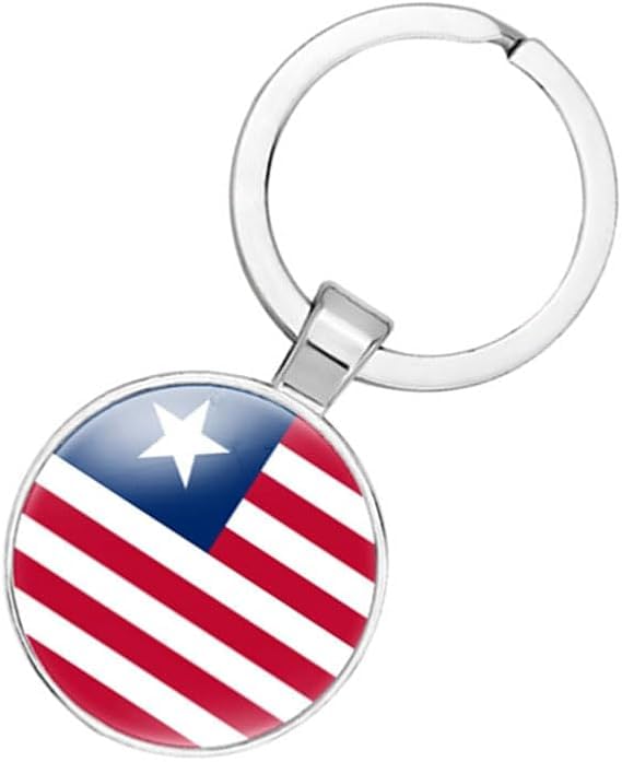Generic - سلسلة مفاتيح بتصميم علم ليبيريا، تصميم العلم الوطني ثلاثي الالوان، حلقة مفاتيح معدنية فضية تذكارية لمشجعي فريق كرة القدم