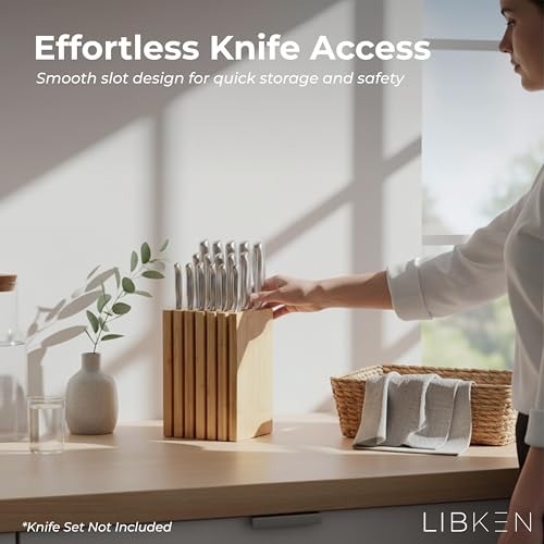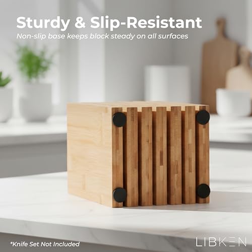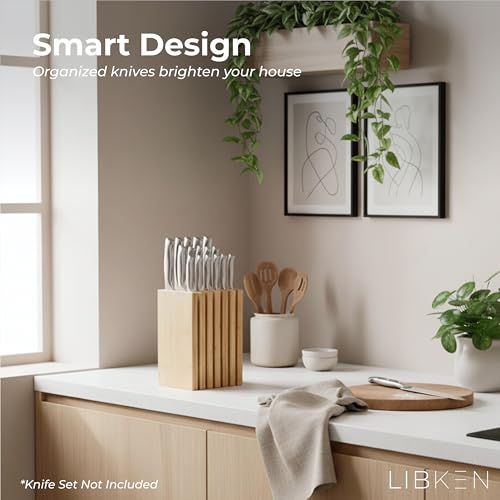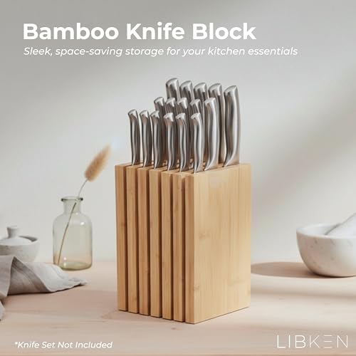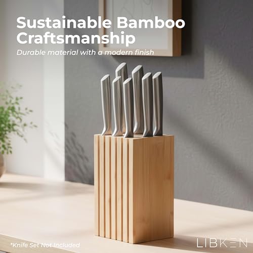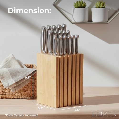 LIBKEN - حامل سكاكين من خشب البامبو بتصميم اسكندنافي بسيط مع 6 فتحات يتسع حتى 18 سكينة مناسب لمجموعة متنوعة من السكاكين ويوضع على سطح المطبخ من ليبكن