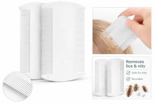 Generic - مشط إزالة القمل بأسنان دقيقة، مشط بلاستيكي لإزالة قمل الرأس والصئبان آمن للأطفال والبالغين، عبوة من2 قطعة، اللون أبيض
