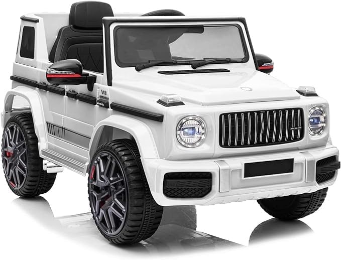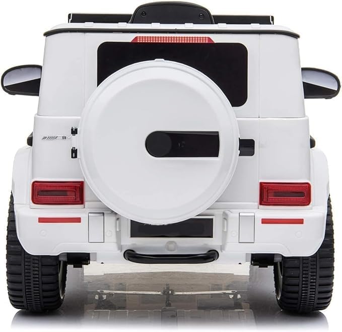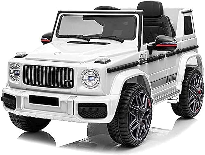 GOLD MANTIS - سيارة ركوب كهربائية مرسيدس بنز ايه ام جي G63 مرخصة للأطفال مزودة بجهاز تحكم عن بعد وإضاءة ليد ومشغل موسيقى بمنفذ USB وتصميم واقعي | سيارة اطفال تعمل بالبطارية 12 فولت، لون أبيض