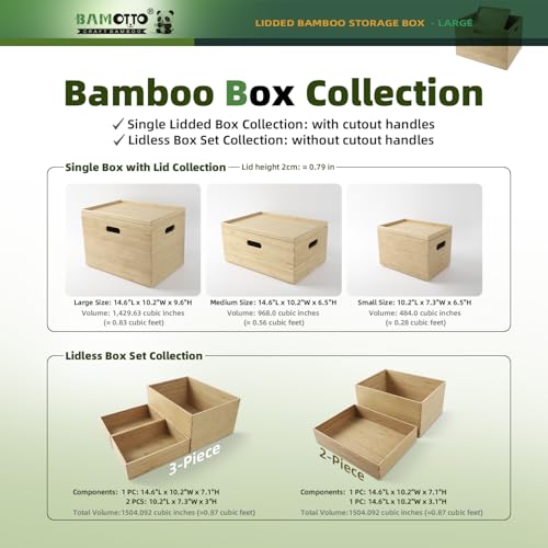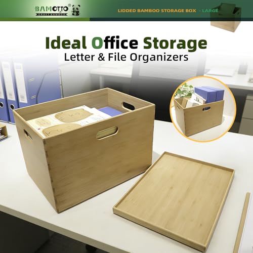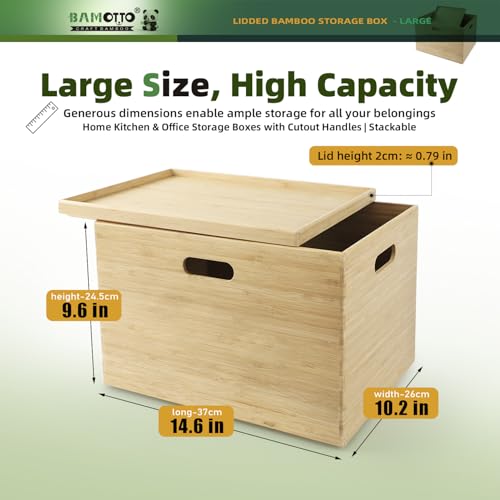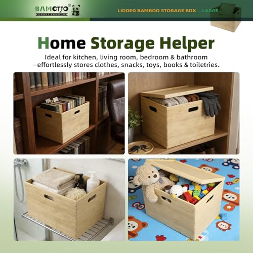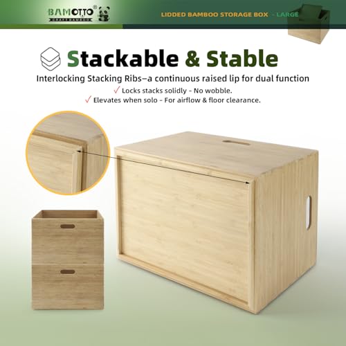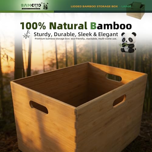 BAMOTTO CRAFTBAMBOO - منظم مكعب بامبو قابلة للتكديس مع غطاء، صندوق تخزين بمقابض، سلة وعلب تخزين للمطبخ والمنزل والملابس واللعب والمفروشات ومستلزمات الأطفال والفنون ورف المكتب، 37.08 × 25.91 × 24.38 سم