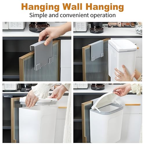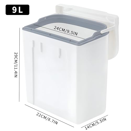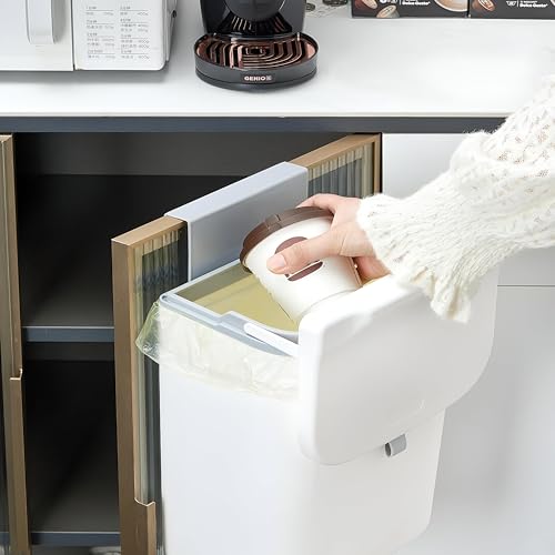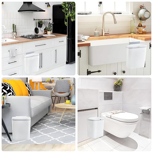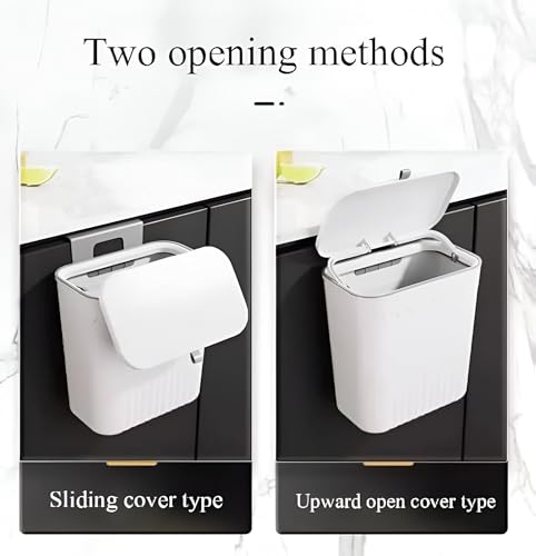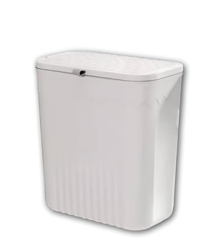 Generic - سلة مهملات بغطاء - سلة مهملات صغيرة متعددة الاستخدامات للمطبخ او الحمام او غرفة النوم او المكتب؛ تعلق تحت الحوض او تثبت على الحائط؛ 9 لتر، ابيض نقي