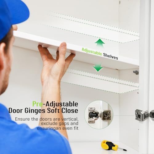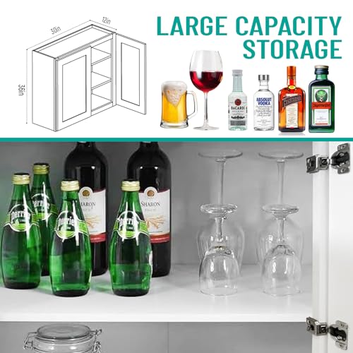 Lieeres - خزانة مطبخ تثبت على الحائط من ليريس، خزانة شاكر بيضاء مثبتة على الحائط، خزانة علوية ار تي ايه عصرية للمطبخ والحمام مع باب (ابيض، 30 انش عرض × 36 انش ارتفاع × 12 انش عمق)