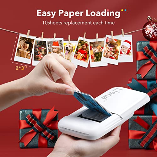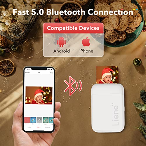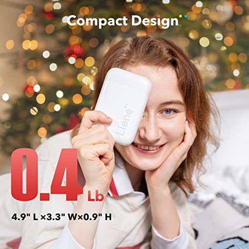 Liene - طابعة صور فورية، طابعة فورية محمولة من ليين 5×7.5 سم مع 100 ورقة صور لاصقة من الزنك، بلوتوث، متوافقة مع iOS وأندرويد، طابعة صور أحادية اللون صغيرة للآيفون والهواتف الذكية، أبيض