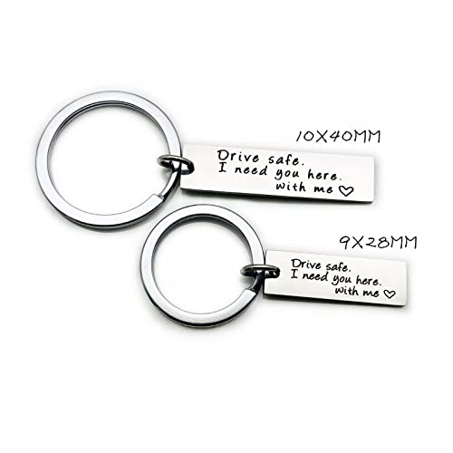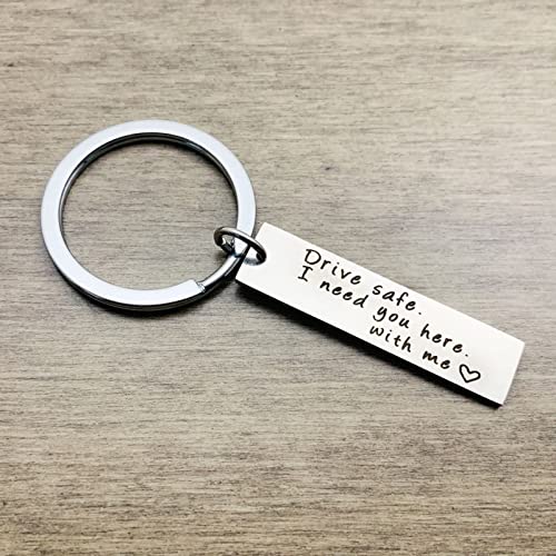 Lieson - حلقة مفاتيح مع نقش من ليسون، مفتاح سيارة من الفولاذ المقاوم للصدأ للرجال والنساء، لوحة عسكرية للقيادة آمنة بعبارة «I Need You Here with Me» - فضي