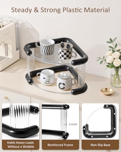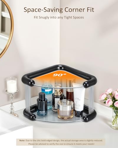 Lifcozy - منظم زاوية للحمام من لايف كوزي، منظمات مستحضرات العناية بالبشرة والعطور وسطح تخزين، رف مكياج لخزانة التزيين، حامل متعدد الطبقات للعناية بالبشرة، طبقتين، اسود