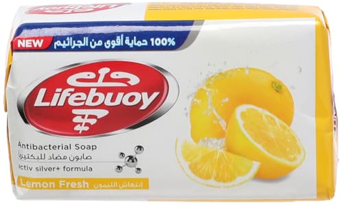Lifebuoy - صابون مضاد للبكتيريا برائحة الليمون المنعش بتركيبة اكتيف سيلفر من لايف بوي، 165 جرام (عبوة من 4 قطع)