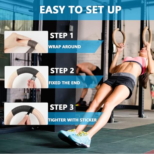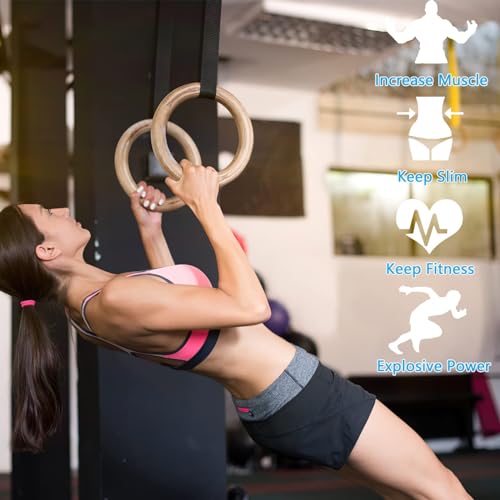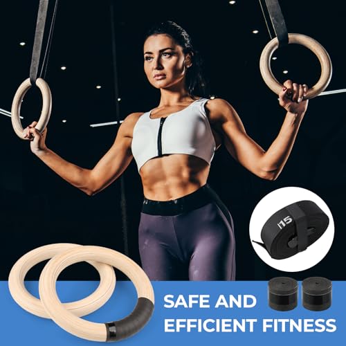 LIFERUN - حلقات جمباز خشب أولمبية مع شريط للامساك، حلقات اللياقة البدنية بإبزيم قابلة للتعديل وعلامات تدريب لكامل الجسم وحلقات اللياقة البدنية من لايفران، خشب، 32 ملم