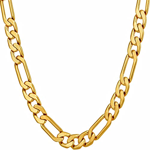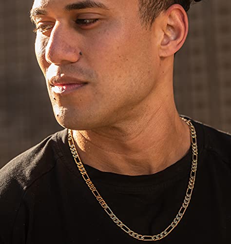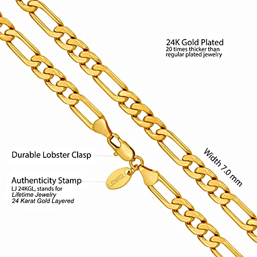 LIFETIME JEWELRY - سلسلة فيجارو مسطحة للجنسين مطلية بالذهب الحقيقي عيار 24 قيراطا من لايف تايم جيوليري مقاس 4 ملم 5.5 7 بدون أحجار كريمة