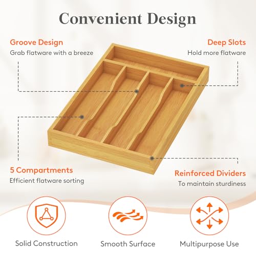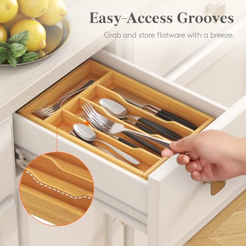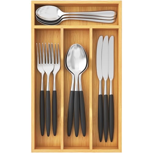 Lifewit - لايفويت منظم ادراج الفضيات، صينية ادوات للمطبخ، حامل ادوات المائدة مكون من 4 فتحات، لتخزين الملاعق والشوك والسكاكين، طبيعي