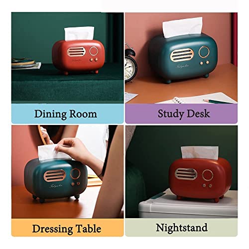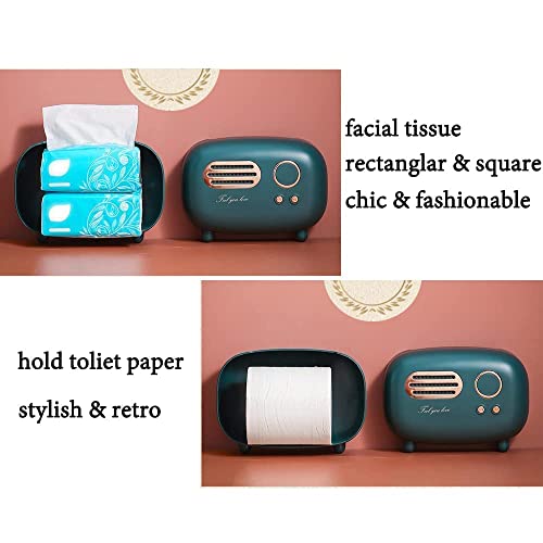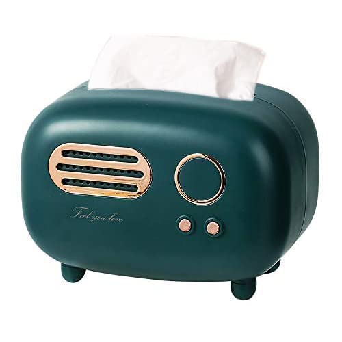 Lifexquisiter - حامل علبة مناديل بتصميم راديو ريترو من لايف اكس كيستر، صندوق مناديل الوجه متعدد الاستخدامات على شكل راديو للحمام/غرفة المعيشة/تسريحة غرفة النوم/الكومود/المكتب/الترابيزة/اخضر غامق