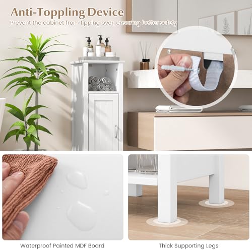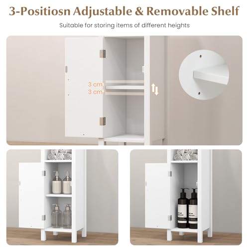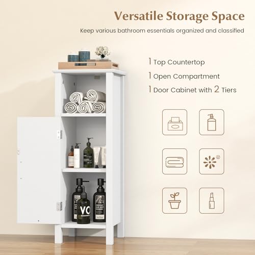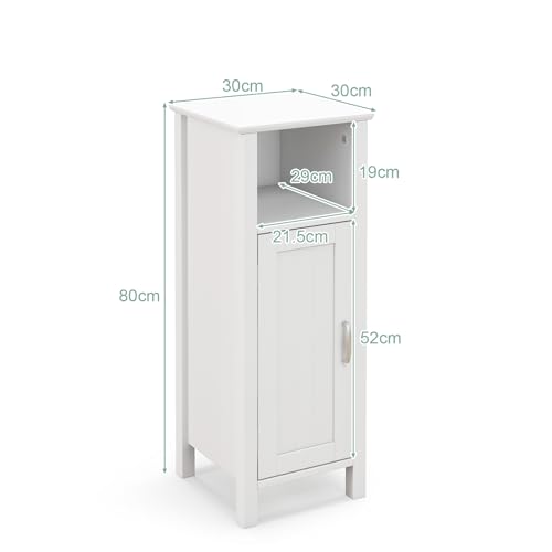 LIFEZEAL - خزانة حمام من لايف زيل، 30 × 30 × 80 سم، خزانة ارضية قائمة بذاتها مع باب واحد وحجرة مفتوحة، رف قابل للتعديل، اثاث زاوية للحمام وغرفة المعيشة (ابيض)