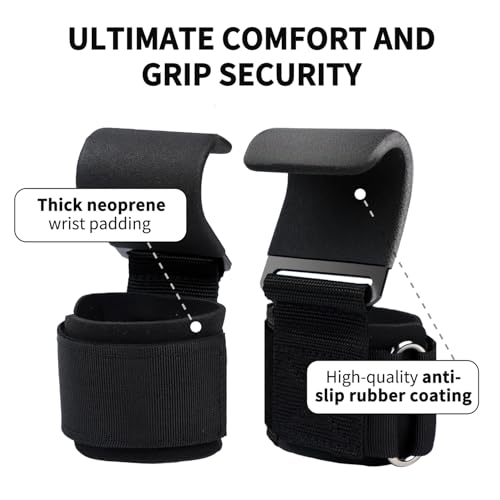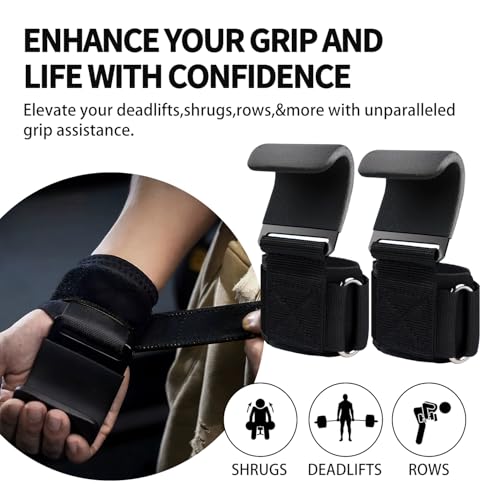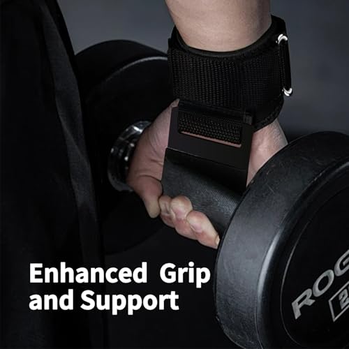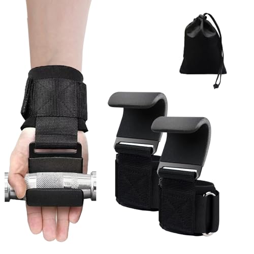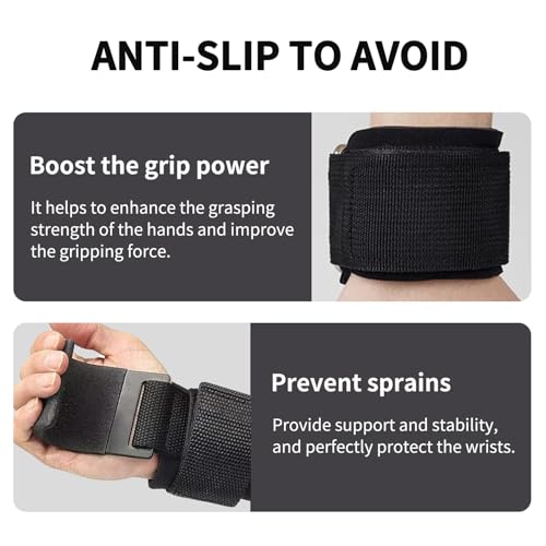 XXKJAU - خطافات رفع الاثقال مزودة بأساور معصم لدعم قبضة اليد، قفازات رفع الاثقال للجيم مناسبة للرجال والنساء