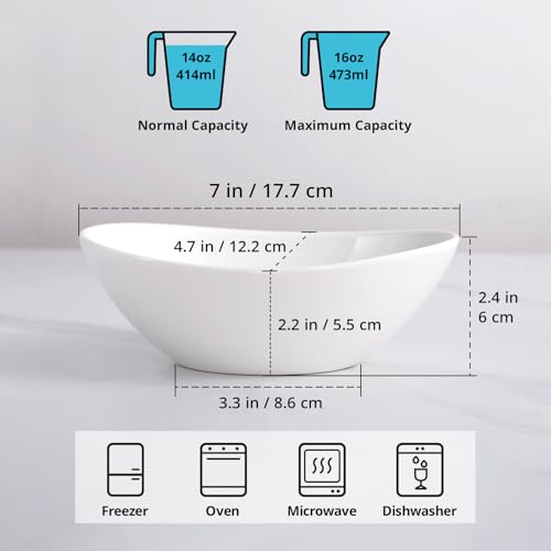 LIFVER - ليفر اوعية حبوب 16 اونصة حلوى من البورسلين مجموعة 6 للحلوى والارز والسلطة ابيض