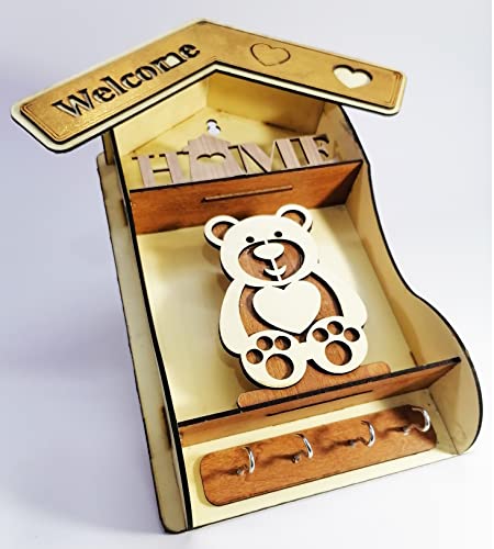 Generic - علاقة مفاتيح وحامل وعليقة للمفاتيح خشب دبدوب بيج فاتح واربعة خطاف معدن