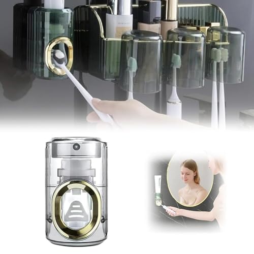 Moonboat - عصارة معجون أسنان فاخرة خفيفة، موزع معجون أسنان مطور 2024، عصارة معجون اسنان منزلية بدون ثقب، عصارة معجون اسنان أوتوماتيكية دقيقة تثبت على الحائط للمنزل والحمام (شفاف)