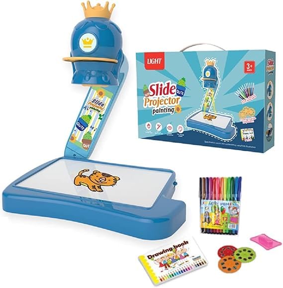 - مجموعة كاملة: يشمل جهاز عرض شرائح، و10 أقلام ماركر قابلة للغسل و12 شريحة مطبوعة مسبقًا وكتيب رسم للمباشرة.