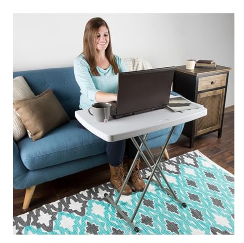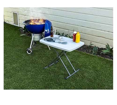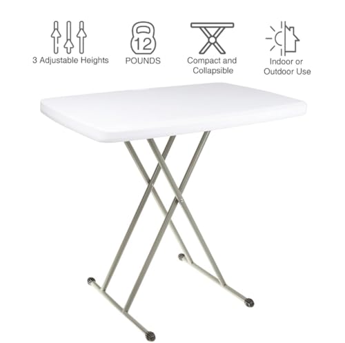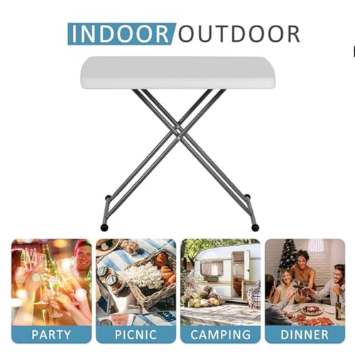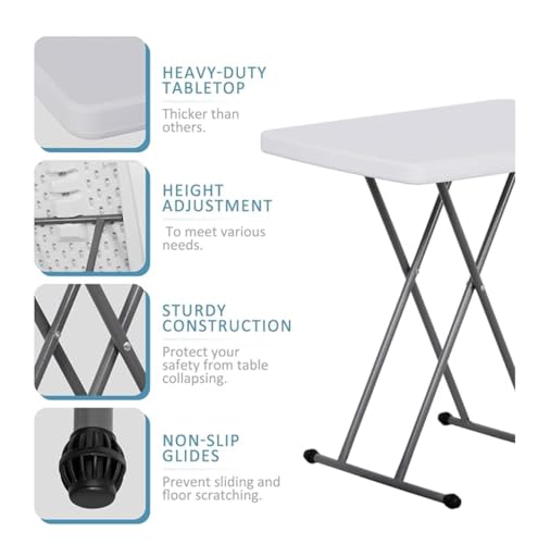 Generic - طاولة قابلة للطي خفيفة الوزن وقابلة للتعديل، سطح بلاستيك أبيض مع إطار معدني رمادي، طاولة محمولة، متينة بارتفاع قابل للتعديل للمساحات الصغيرة وللاستخدام الداخلي والخارجي