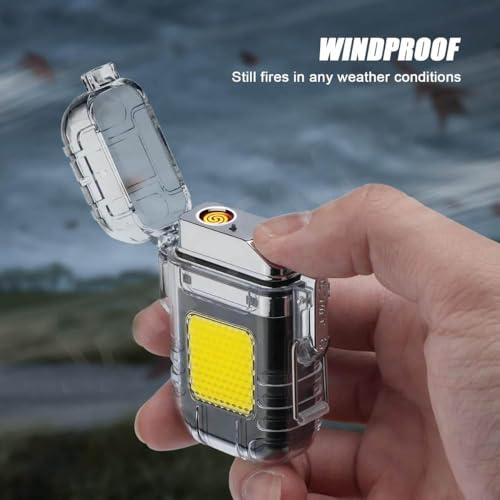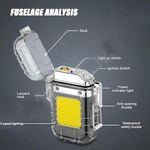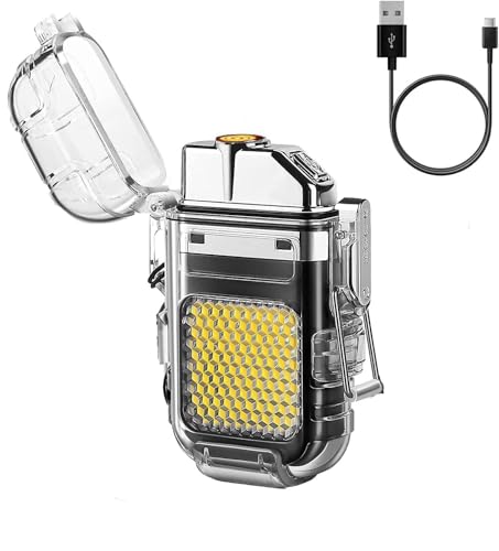 Generic - ولاعة كهربائية مقاومة للماء ومصباح يدوي بتصميم قابل لإعادة الشحن بمنفذ USB للمشي لمسافات طويلة ومعدات التخييم ومعدات النجاة - متعددة الوظائف 2 × 1