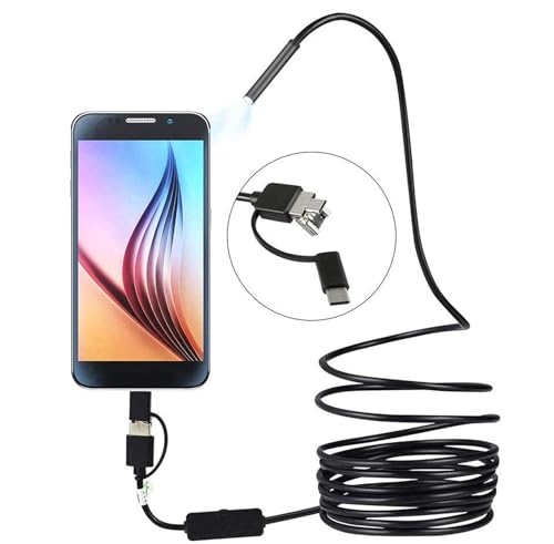 Munginleer - كاميرا فحص منظار 3 في 1 مضاءة، منفذ Micro USB / نوع C متوافقة مع موبايل أندرويد واللاب توب ونظام ويندوز وغيرها (طول 5 أمتار)