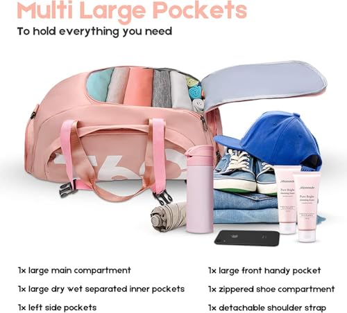 - حقيبة قابلة للغسل وخالية من التجاعيد - استخدمها كحقيبة لصالة الألعاب الرياضية أو حقيبة التمرين أو حقيبة رياضية أو حقيبة رقص أو حقيبة ليلية أو حقيبة حمل أو حقيبة سفر. احمل جميع مستلزمات صالة الألعاب الرياضية والسفر.