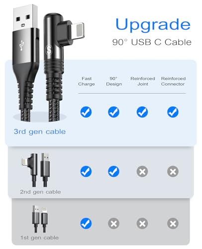 sweguard - كيبل لايتنينج بزاوية قائمة بطول 3 متر، كيبل شاحن ايفون معتمد من ابل بزاوية 90 درجة، سلك مضفر للشحن السريع، شحن بي دي 18 وات لايفون متوافق مع ايفون 14 برو ماكس/14/13/12/11/اكس ار/8 بلس/ايباد
