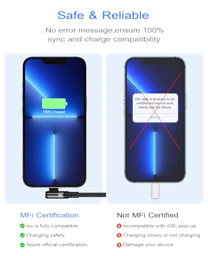 - ⚡【شحن سريع وآمن】يدعم كيبل شاحن ايفون هذا الشحن السريع (حتى 2.4 امبير) ومزامنة نقل البيانات (حتى 480 ميجابت في الثانية). كل سلك شحن مصنوع من سلك نحاسي عالي الجودة لضمان المزامنة الفعالة.