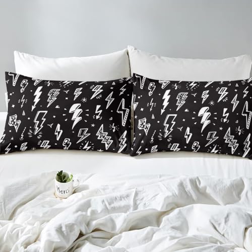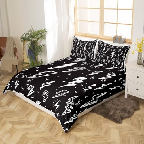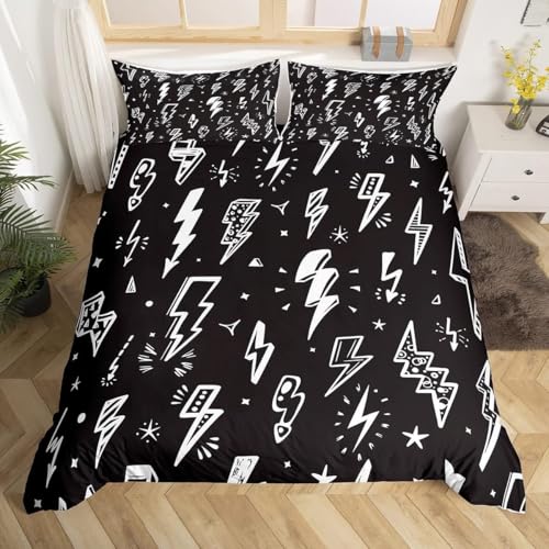 Generic - طقم غطاء لحاف بتصميم صواعق البرق مرسومة يدويا، مكون من 3 قطع لسرير الأطفال والأولاد، يتضمن غطاء لحاف من الألياف الدقيقة وملاءة سرير مع 2 كيس وسادة (بدون لحاف) بمقاس كينج