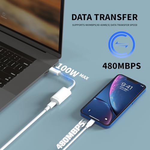 - للشحن السريع ونقل البيانات: يدعم محول USB C إلى لايتنينج ما يصل إلى الشحن السريع، ويدعم سرعة نقل البيانات 480 ميجابت في الثانية (40-60 ميجابايت/ثانية) ويمكنك توصيله بسهولة بجهاز USB C للشحن ونقل البيانات باستخدام كابل لايتنينج. ملاحظة: يدعم شحن موبايل آيفون بمنفذ USB A إلى كابل لايتنينج حتى 5 فولت/2.4 امبير. يدعم شحن موبايل آيفون بمنفذ USB C إلى كابل لايتنينج حتى 9 فولت/3 امبير.