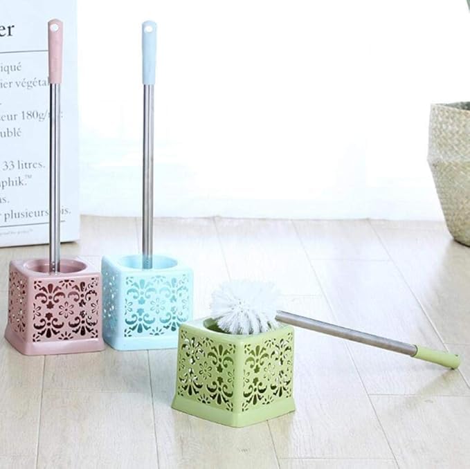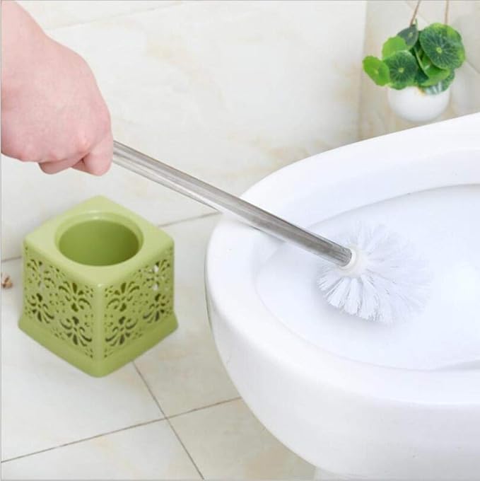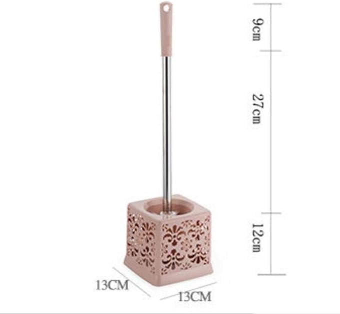 Generic - طقم حامل فرشاة تواليت للحمام خفيف الوزن مصنوع من البلاستيك وفولاذ مقاوم للصدأ، فرشاة تنظيف المرحاض المنزلية مع مقعد دائري منحوت - 2