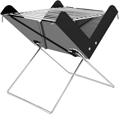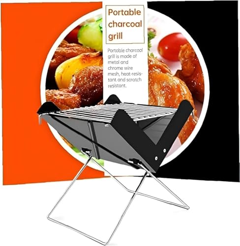 Generic - شواية فحم خفيفة الوزن - شواية محمولة قابلة للطي مصممة للاستخدام في الهواء الطلق مع هيكل معدني مقاوم للحرارة وشبكة سلكية من الكروم، ابعاد صغيرة 30 × 27 × 6 سم مثالية للسفر والتخييم والنزهات