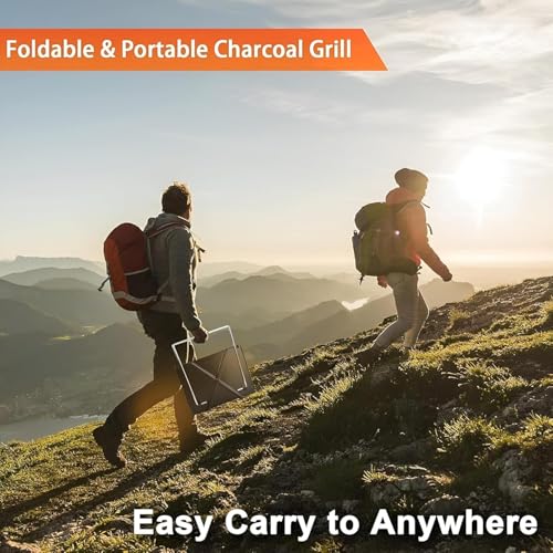 - تتميز شواية الفحم المحمولة هذه بتصميم إطار على شكل حرف X قابل للطي يبلغ مقاسه 30 سم × 26.5 سم × 30 سم عند تجميعها، مما يوفر حلاً صغيرًا وموفر للمساحة، مثالي للمغامرات الخارجية مثل التخييم أو المشي لمسافات طويلة أو نزهات الشاطئ، مما يسمح بسهولة التعبئة والنقل في أي حقيبة ظهر بسبب مظهرها النحيف الذي يبلغ 6 سم فقط عند طيها.