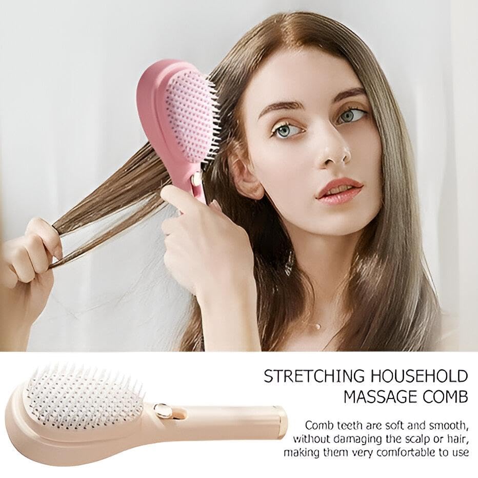 Generic - فرشاة فك تشابك الشعر خفيفة الوزن - آلية تنظيف تلقائية مع سحب بضغطة واحدة، مثالية لجميع أنسجة الشعر، تحفيز لطيف لفروة الرأس، سهلة الحمل والتنظيف (بينك)