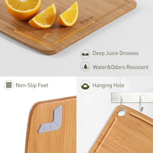 Socisen - لوح تقطيع من الخيزران المتين خفيف الوزن مع اقدام غير قابلة للانزلاق، لوح تقطيع خشبي غير سام للمطبخ مقاوم للحرارة لوح تقطيع وتشاركوتيري مع اخدود عصير من اساسيات المطبخ للحوم