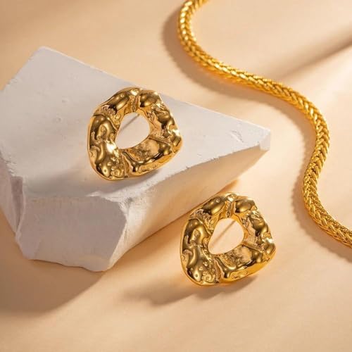 Generic - مجوهرات خفيفة الوزن - اقراط مرصعة بلمسة نهائية ذهبية اللون مع شكل منحوت وحلية بسيطة لارتداء متعدد الاستخدامات