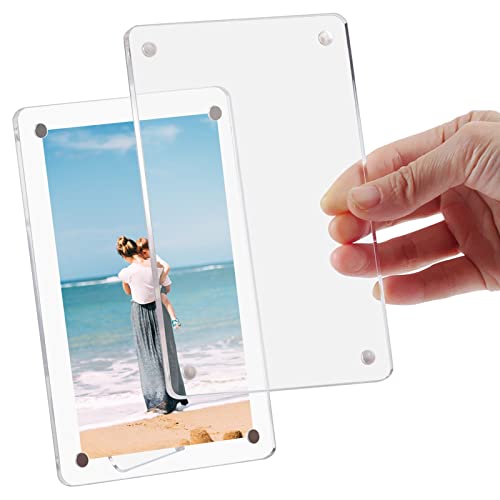 LileZbox - إطار صورة شفاف مغناطيسي قائم بذاته بوجهين وبدون إطار مصنوع من الاكريليك مقاس 5 × 7 سم، مناسب كهدية للعائلة ولوضع المستندات وصور الأطفال، عبوة من 1 قطعة، من ليلي زد بوكس