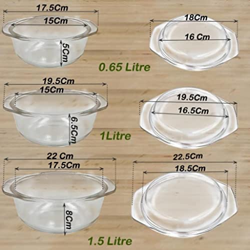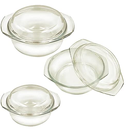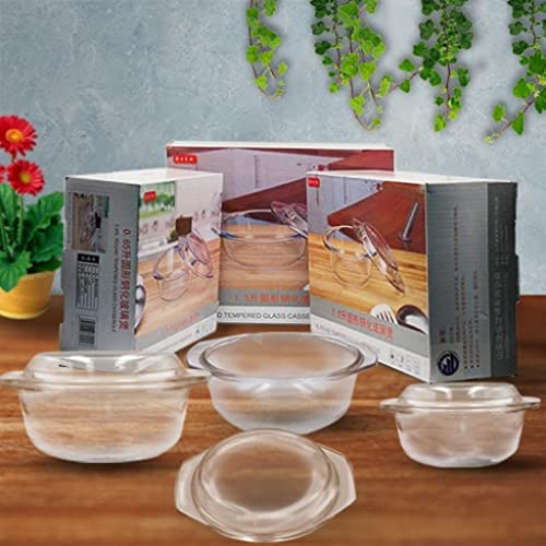 LILKY - طقم بايركس دائري شفاف مع مقبض وغطاء، اطباق خبز 3 احجام 1.5 لتر و1 لتر و0.65 لتر، طقم اطباق بايركس غويطة مناسبة للتخزين في الثلاجة، عالية المقاومة وسهلة المسك