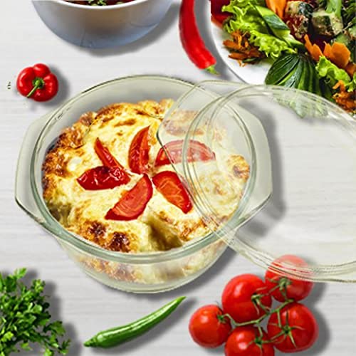 - طقم زجاج بايركس شفاف دائري مع مقبض وغطاء من سما ليلكي تريدينج: قم بإعداد الطهي والتقديم والتخزين في طبق واحد