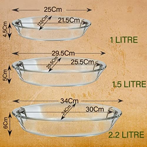 LILKY - طقم صواني زجاجية بيضاوية شفافة مزودة بمقبض من البايركس من ليلكي، أطباق خبز 3 قطع بثلاث مقاسات 2.2 لتر و1.5 لتر و1 لتر، مجموعة بايركس عالية المقاومة وسهلة الإمساك، مجموعة أدوات خبز مع هدية صغيرة