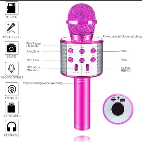 - جودة الصوت: جودة صوت رائعة وممتعة للغاية للغناء مكبر صوت مدمج بقطر كبير. مما يجعل الصوت مرتفع وواضح. يمكنك تغيير صوتك عن طريق الاختيار من بين 4 أوضاع صوت مختلفة (صوت رجل. صوت امرأة. الأطفال والوحش).