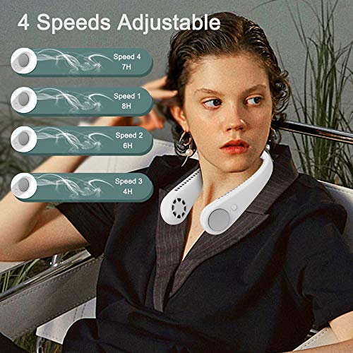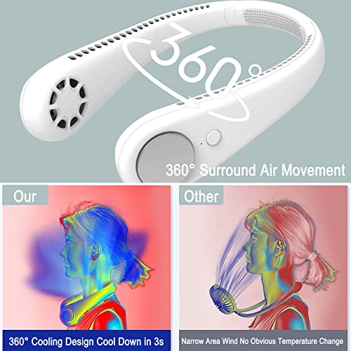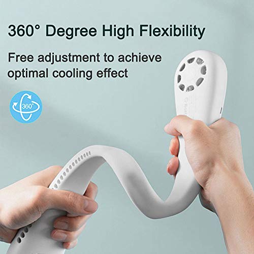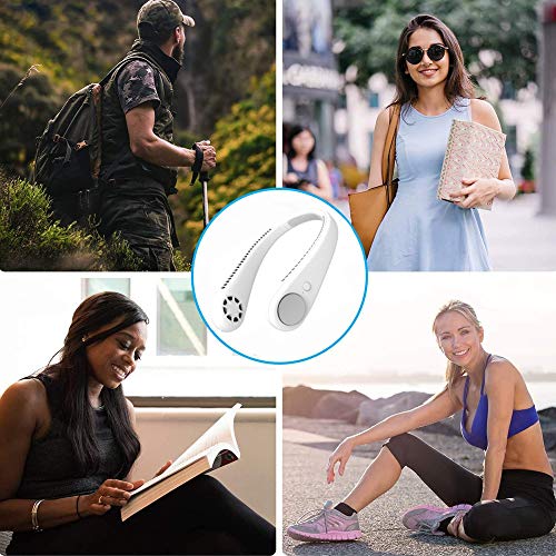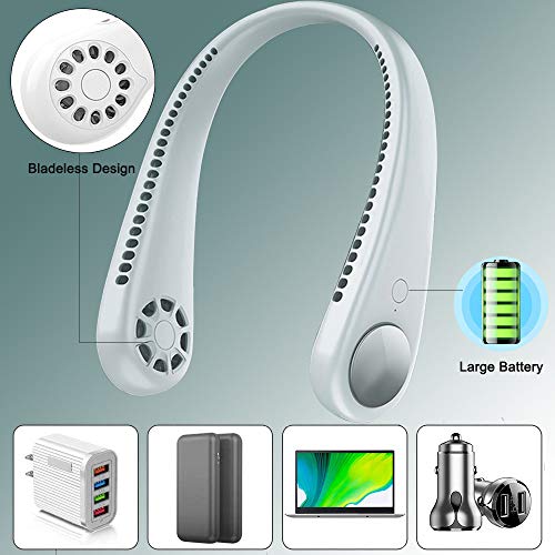 LIMTZOPY - مروحة رقبة شخصية محمولة بدون ريش ويمكن ارتداؤها مبرد هواء بزاوية 360 درجة للاستخدام حر اليدين جهاز تبريد بتصميم سماعة رأس بـ4 سرعات ويعمل ببطارية للمكتب والجيم والتخييم والأماكن الخارجية 5 واط أبيض