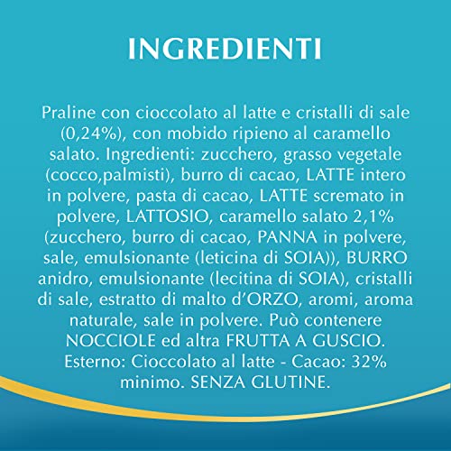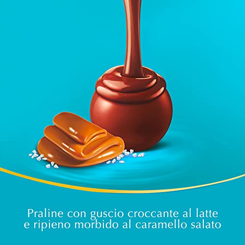 - قشرة مقرمشة من أجود أنواع شوكولاتة الحليب تحتوي على حشوة كراميل مملحة ناعمة مع ذوبان لا يقاوم