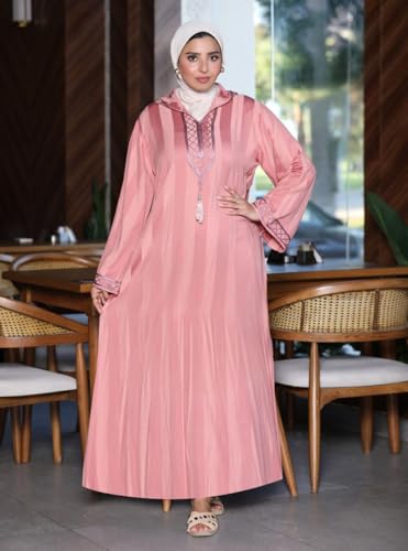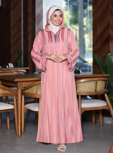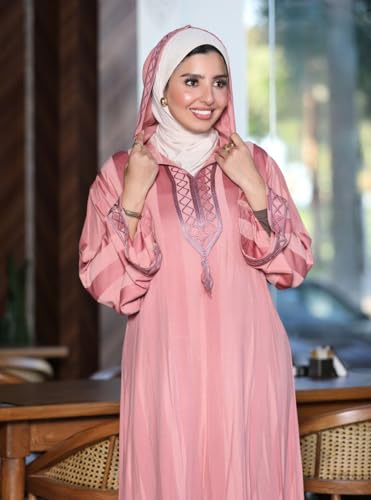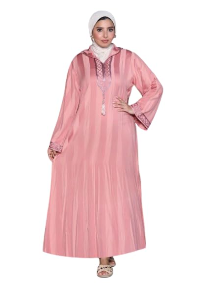 Generic - عباية خروج واستقبال كتان في ستان بتطريز هندسي أنيق مع كابيشون – تصميم مودرن واسع – مقاسات 1-2 (مقاس 1 من 60 إلى 85 كجم / مقاس 2 من 85 إلى 120 كجم)