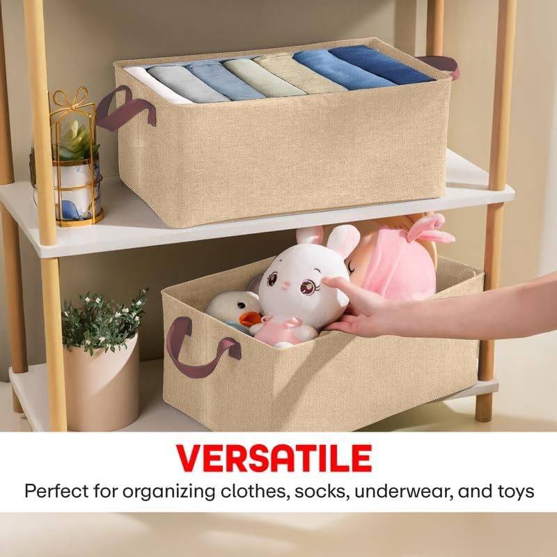 - ✅ 【متعدد الاستخدامات】 لا يقتصر استخدام بوكس التخزين القماشي على الملابس فقط، بل يمكن استخدامه لتنظيم الإكسسوارات أو المفروشات الخفيفة أو ملابس الأطفال، مما يجعله منتجًا عمليًا متعدد الوظائف داخل المنزل، ويساعد على الحفاظ على ترتيب شامل لمختلف الأغراض اليومية بطريقة أنيقة ومنظمة. 🧩