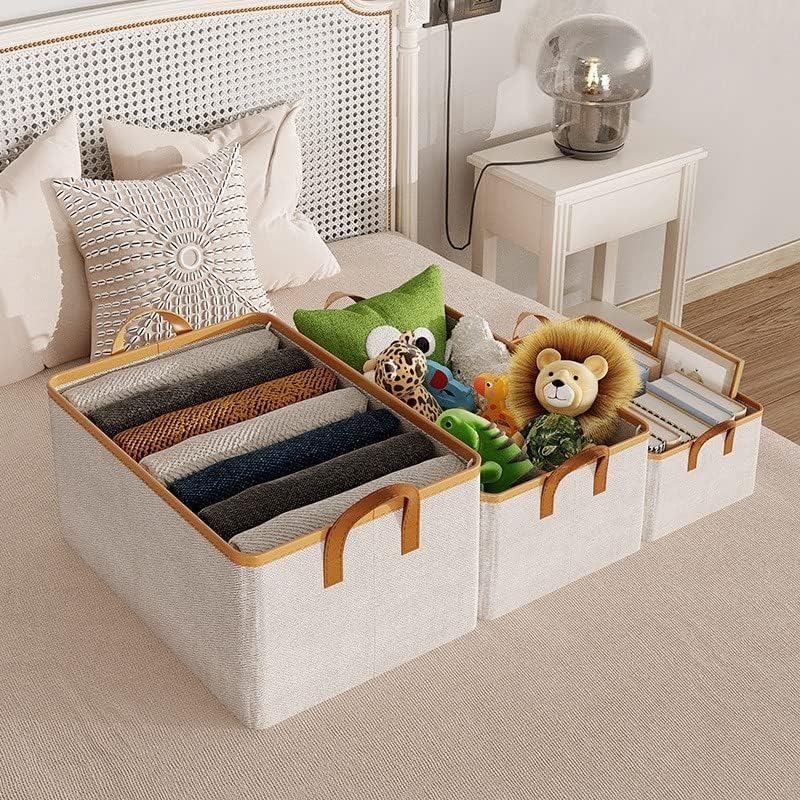 Generic - منظم ملابس قماش كتان للدريسينج بمقاس 45 × 30 × 20 سم لحفظ وترتيب الملابس داخل الدولاب بسهولة مع تصميم عملي وأنيق مقاوم للاستخدام اليومي