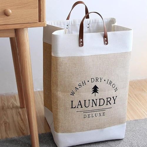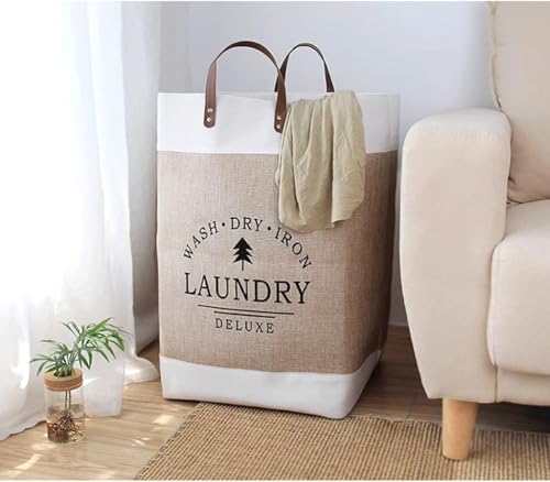 - STRONG LEATHER HANDLES FOR EASY CARRYING – Equipped with comfortable leather handles, this laundry basket allows you to carry clothes or items easily between rooms. The reinforced handle design provides reliable support when lifting or moving the basket, making it convenient for transporting laundry from bedrooms to the washing area without difficulty.