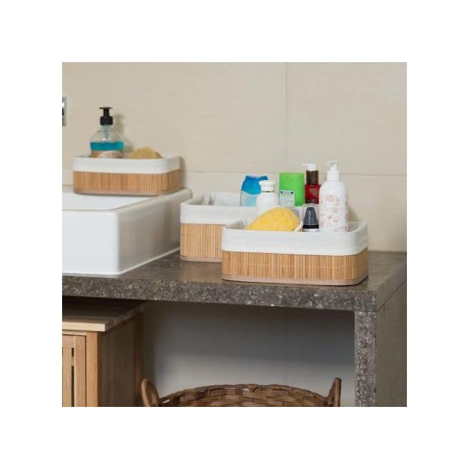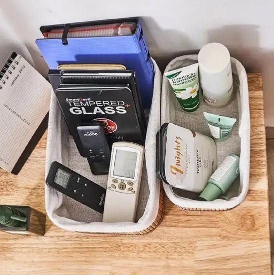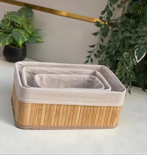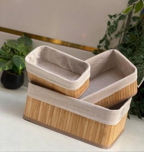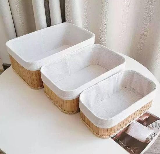 Generic - طقم منظمات خوص مربعة متبطن كتان محمل لتنظيم الأدوات والإكسسوارات بشكل أنيق