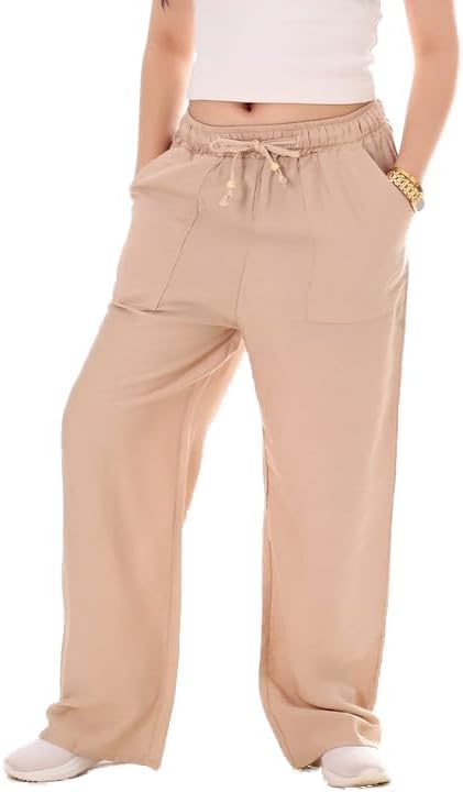 linen Pants - بنطلون كتان كاجوال مقاس واحد حتى 80 كغم؛ بنطلون 100 سم