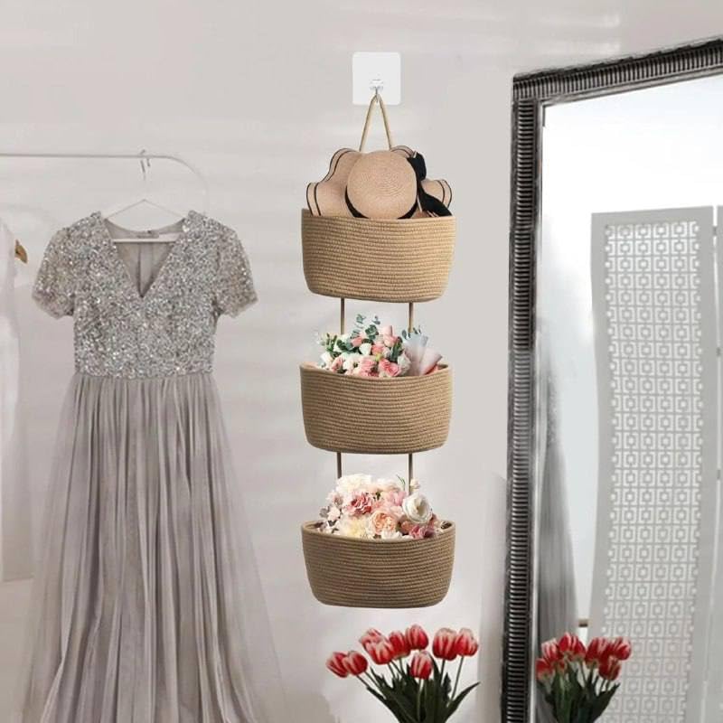 - تصميم متعدد المستويات: منظم حائط مكون من 3 مستويات للتخزين المثالي، يوفر مساحة تنظيم مريحة ومرتبة