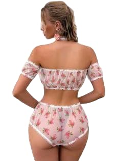 Generic - لانجري سكسى لانجيري مثير لانجرى مع توب هاف ستومك وهوت شورت مزين بورود ليجعل اطلالتك انيقه مثير جدااا بلاى سوتس قصير قميص نوم أنيق بيبي دول حريمى شفاف من كيان للتجارة والتوزيع كود 569